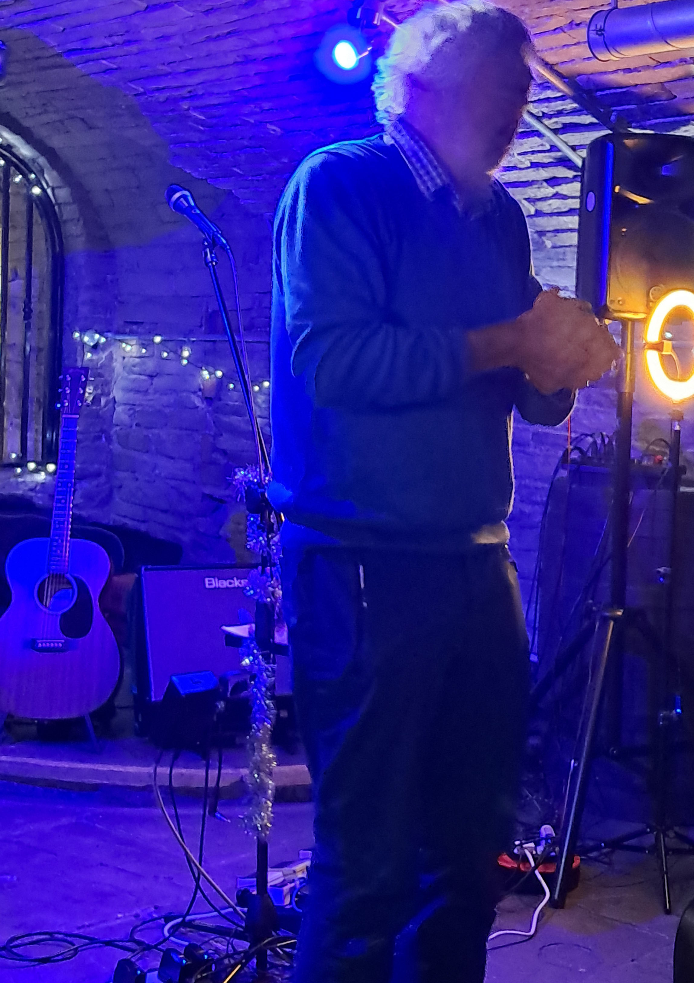 Deep underground, magically removed from the city above, in an atmospheric cavern, the gig opened with compere John Waller’s a cappella ‘Ode to the Boar of Bradford’.